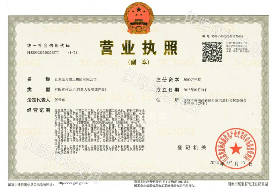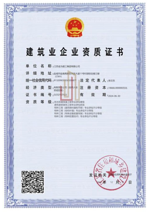 江苏金为建工集团有限公司成立于2015年09月,是建设部核准的房屋建筑施工总承包、市政公用工程总承包、机电工程施工总承包三级资质企业;防腐防水保温工程、装饰装修......